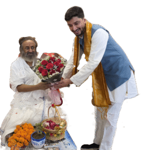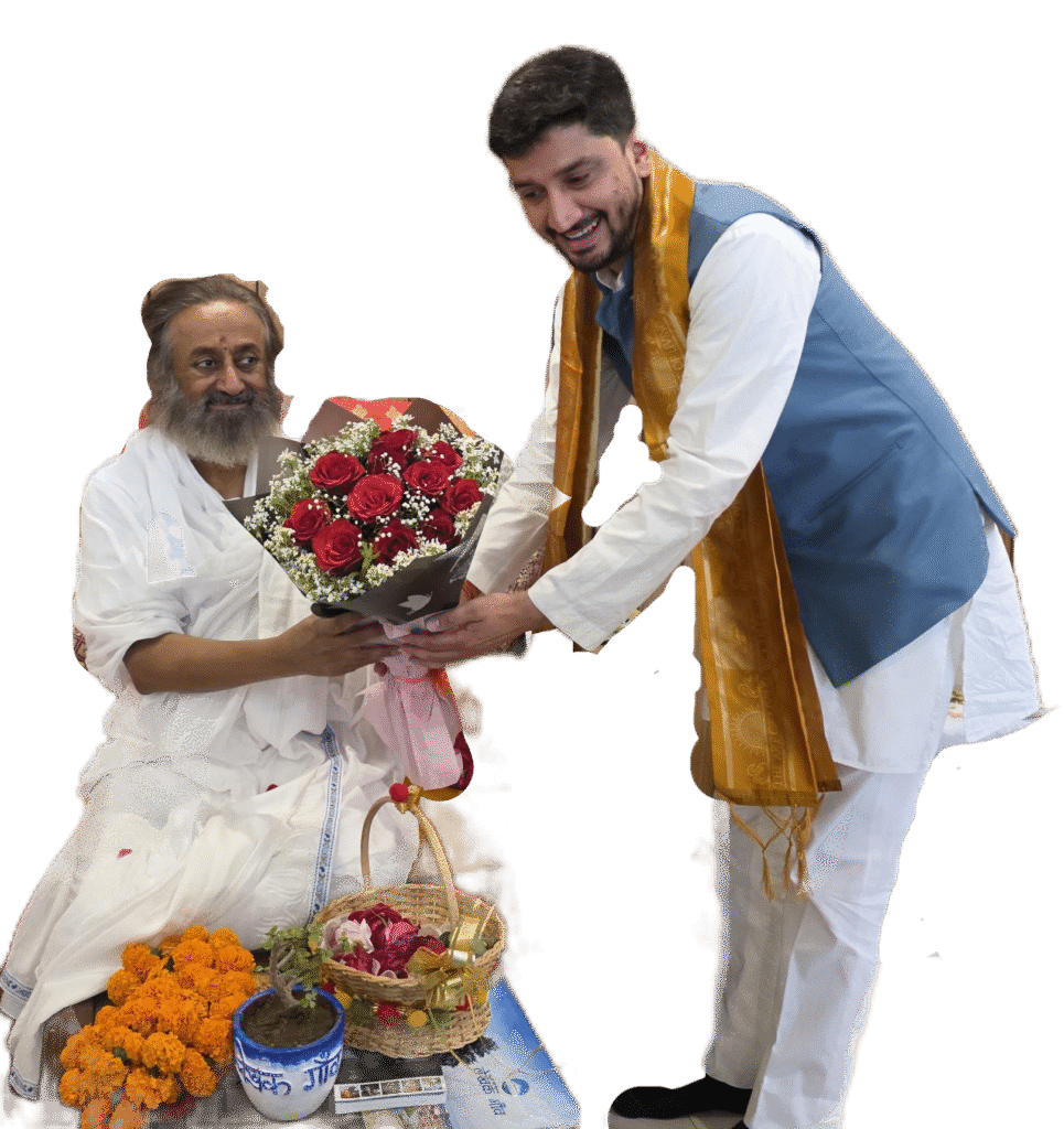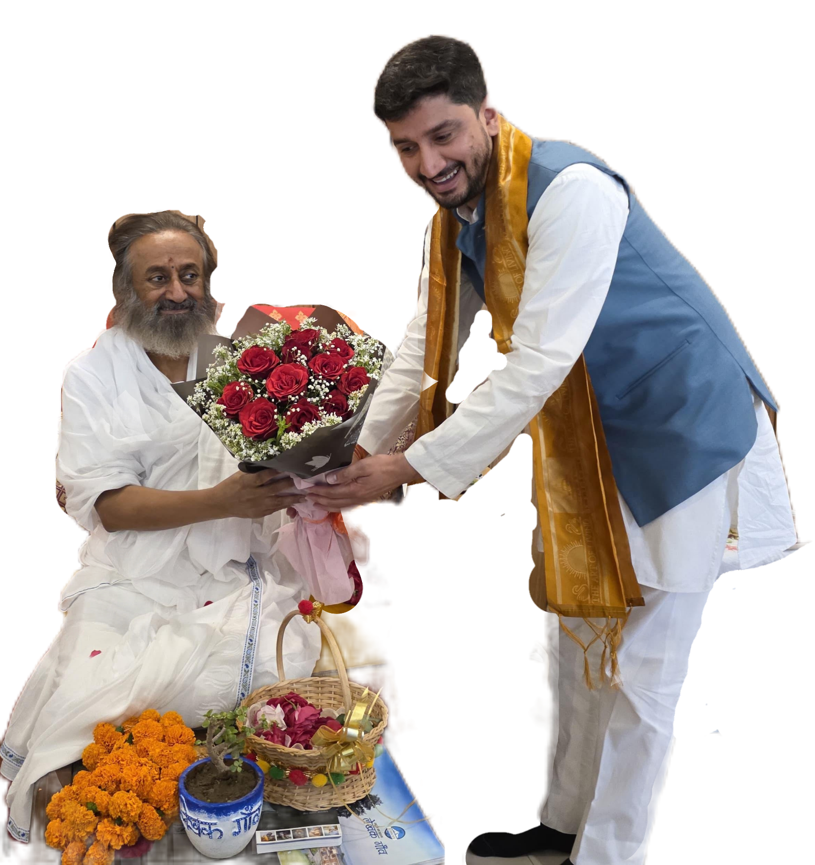 आर्यन देव उनियाल द्वारा श्रीश्री रविशंकर से भेंट कर मसूरी के हित में किया आग्रह