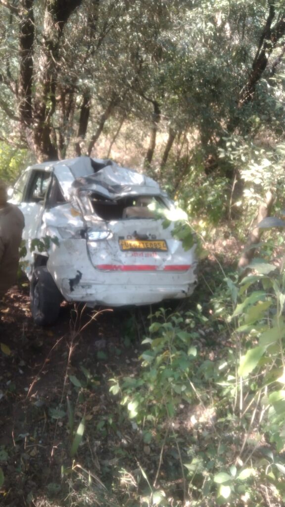 मसूरी झील के समीप वाहन अनियंत्रित होकर गहरी खाई में गिरा,चालक सुरक्षित