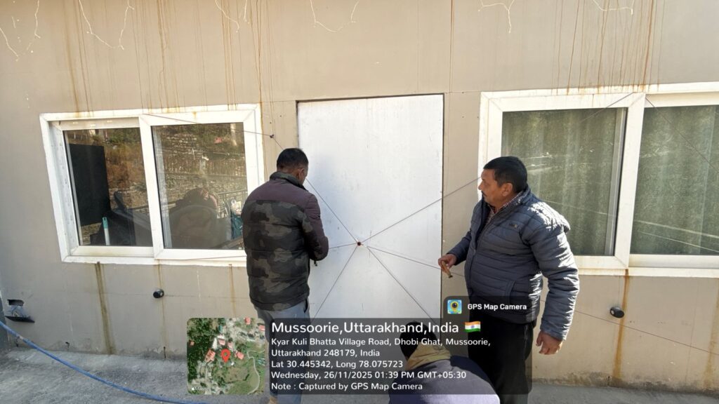 विभाग के कार्यवाही में अधिशासी अभियंता अनुज पांडे, अधिशासी अभियंता अनुराग नौटियाल और पर्यवेक्षक संजीव, उदय नेगी, दिगंबर बडोनी, इंदरदेवी नायल के साथ साइट पर मौजूद पुलिस बल की उपस्थिति में संयुक्त सचिव वीडियो पत्र संख्या 1003 केस नंबर आर-0268/2024 दिनांक 24/11/25 के आदेशानुसार उक्त अनाधिकृत निर्माण कार्यों को सील किया गया।