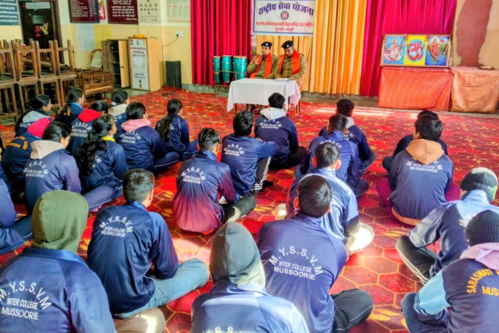 मसूरीपुलिस द्वारा प्राप्त जानकारी के अनुसार वरिष्ठ पुलिस अधीक्षक,जनपद देहरादून के निर्देशन एवं पुलिस अधीक्षक नगर/क्षेत्राधिकारी मसूरी के पर्यवेक्षण में आज कोतवाली मसूरी पुलिस द्वारा महात्मा योगेश्वर सरस्वती विद्या मंदिर इंटर कालेज मसूरी में जाकर साइबर अपराध के प्रति जागरूकता कार्यक्रम का आयोजन किया गया।
