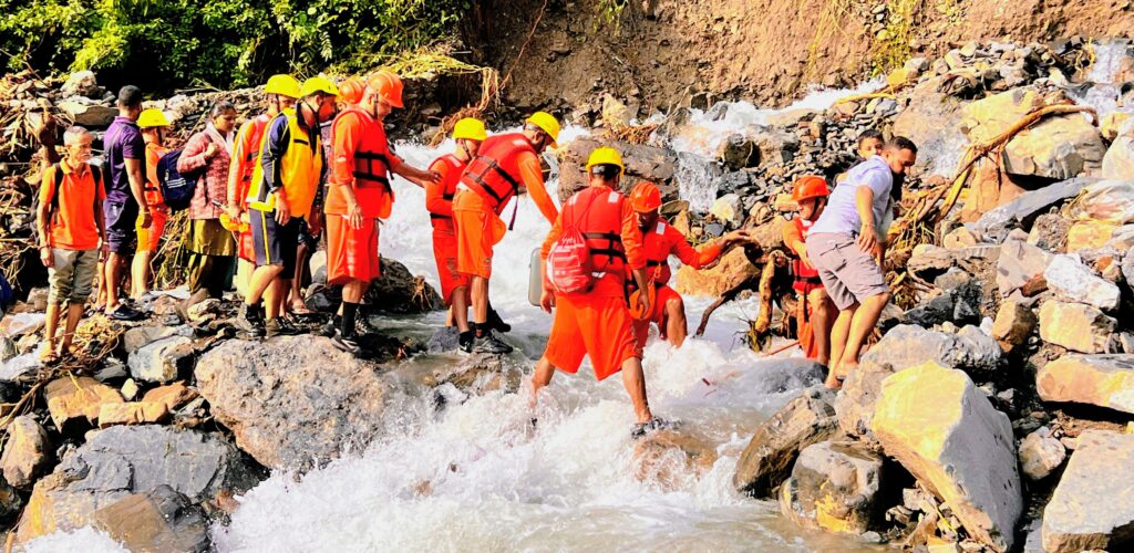 एनडीआरएफ टीमों द्वारा सहस्त्रधारा देहरादून क्षेत्र में रेस्क्यू कर कई लोगों को सुरक्षित स्थानों पर पहुंचाया हैं जिसमें हमारी टीमों द्वारा 19 पुरुष, 23 महिला,18 बच्चे 60 लोगों को कर्लिगाड गांव सहस्त्रधारा देहरादून से खाली करवा कर सुरक्षित स्थानों पर लाया गया।
