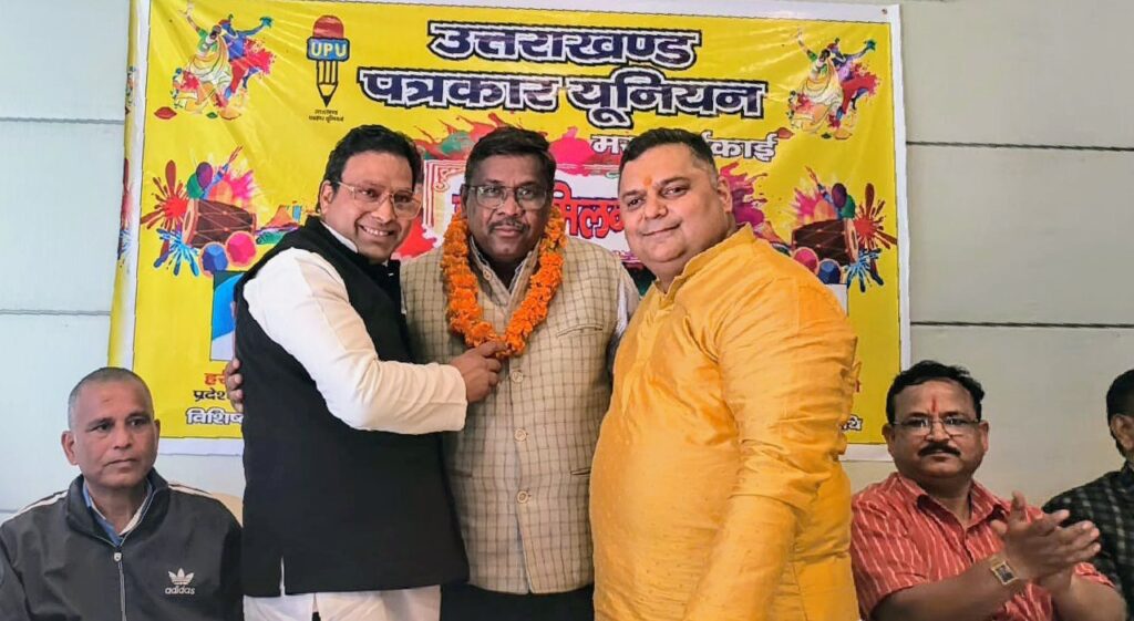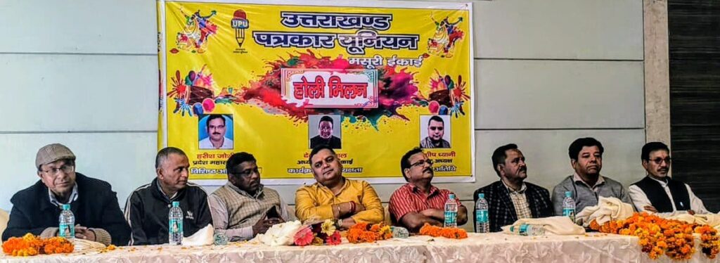 उत्तराखंड पत्रकार यूनियन (UPU) मसूरी शाखा द्वारा मनाया गया होली मिलन समारोह,जमकर हुई पुष्पवर्षा