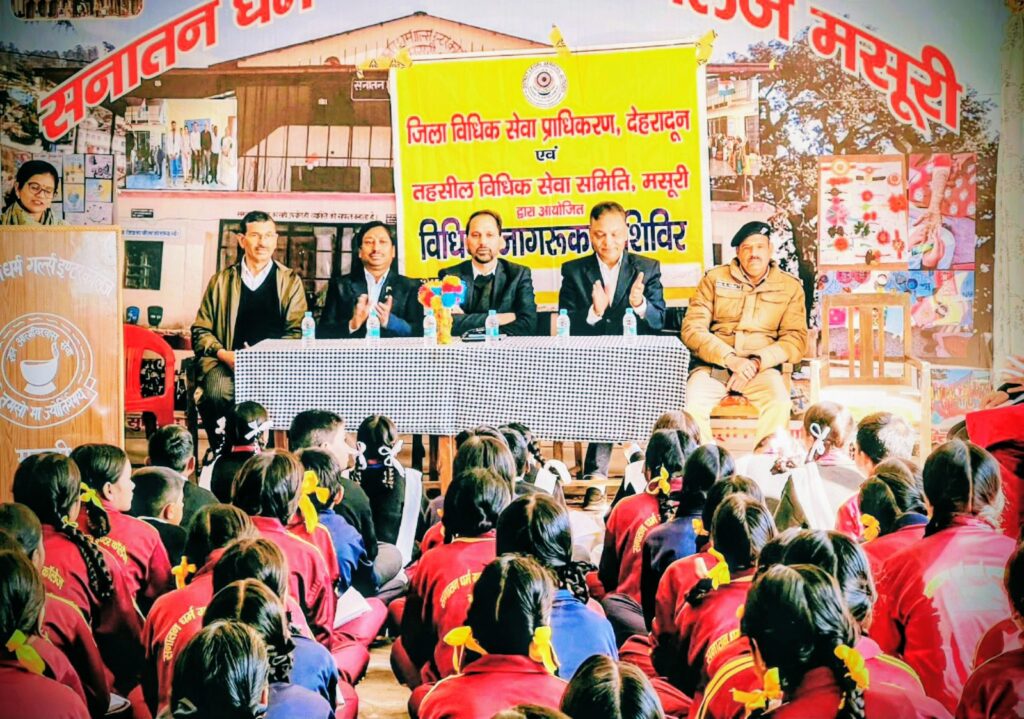 मसूरी- सनातन धर्म गर्ल्स इंटर कॉलेज मसूरी में सिविल जज मनोज राणा के द्वारा विद्यालय की छात्राओं और शिक्षिकाओं को जिला विधिक सेवा प्राधिकरण देहरादून के अंतर्गत तहसील विधिक सेवा समिति मसूरी के द्वारा विधिक जागरूकता शिविर में विधिक जागरूकता, आपदा प्रबंधन एवं साइबर क्राइम और मसूरी सहित पहाड़ी क्षेत्रों में जलवायु परिवर्तन के दुष्प्रभाव से संबंधित महत्वपूर्ण जानकारी साझा की गई।