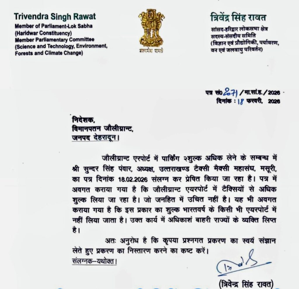 इस सम्बन्ध में माननीय सांसद व पूर्व मुख्यमंत्री त्रिवेंद्र सिंह रावत द्वारा भी संज्ञान लिया गया है।