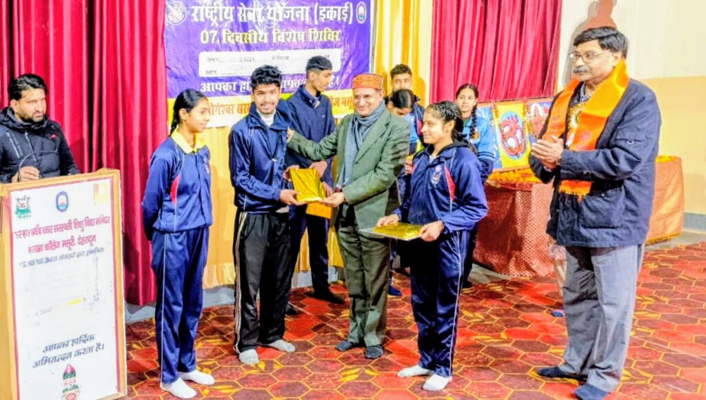 कार्यक्रम के समापन मुख्य अतिथि के रूप में उपस्थित नगर पालिका अध्यक्षा मीरा सकलानी द्वारा उपस्थित स्वयंसेवियों को संबोधित करते हुए कहा की हम सबको सामूहिक रहते हुए एक दूसरे के प्रति सहज व सरल भाव रखते हुए अपने जीवन को जीने का वह गुण इन विशेष शिविरों से ही प्राप्त होते हैं।