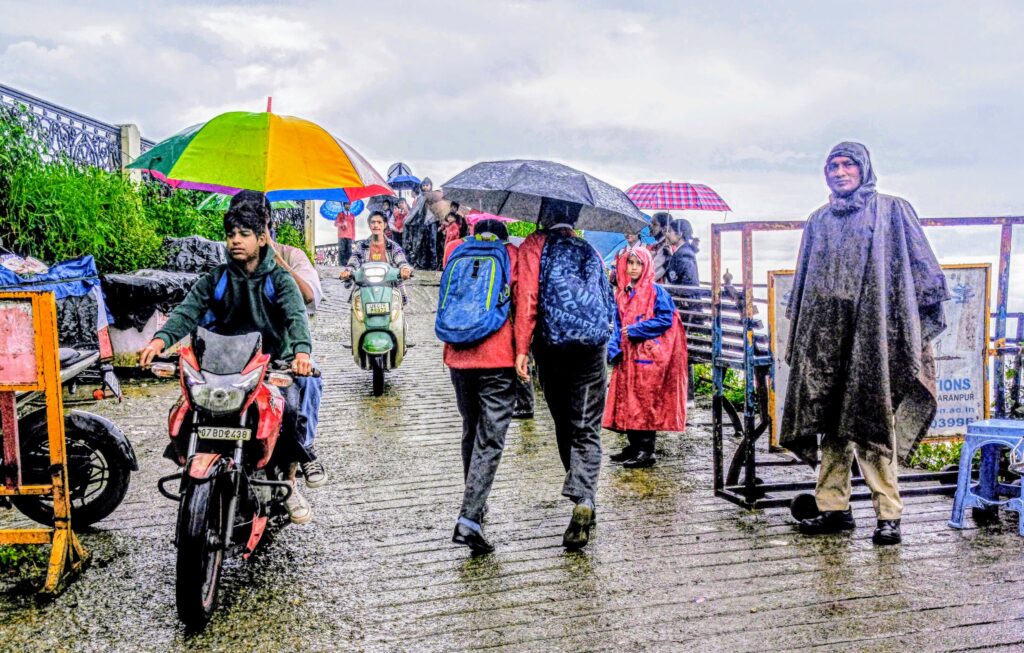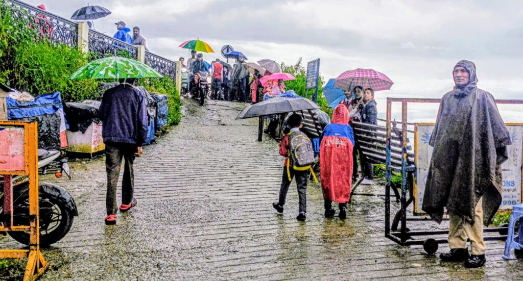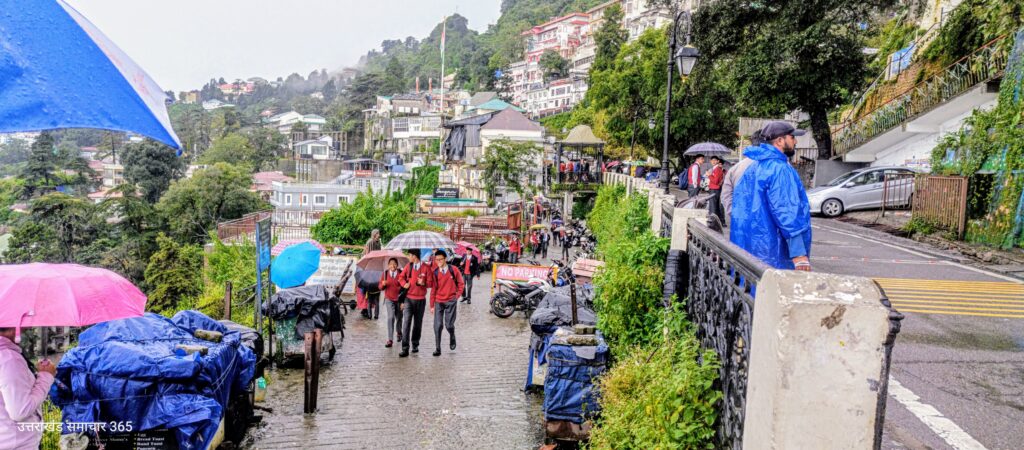 मसूरी- पहाड़ों की रानी मसूरी में इस वर्ष बरसात ने रिकॉर्ड तोड़ दिया है। भारी मूसलाधार बरसात से जनजीवन प्रभावित हुआ हैं।   हैम्पटन कोर्ट रोड पर टैक्सी स्कूटीयों को माल रोड पर आने से रोकने के लिए नगर पालिका द्वारा कर्मचारी कार्यरत है।