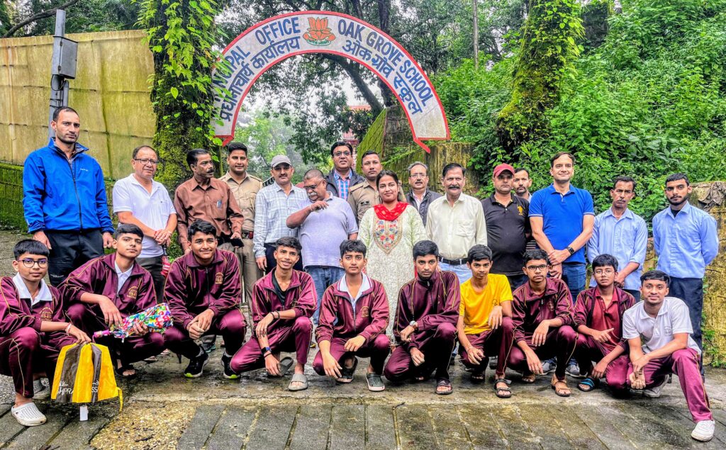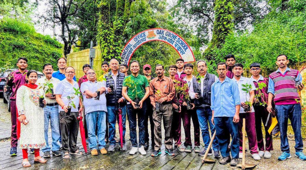 ओक ग्रोव स्कूल के प्रिंसिपल नरेश कुमार IRPS, के साथ विद्यालय के शिक्षक व कर्मचारीगण के साथ छात्र छात्राओं के भरपूर सहयोग से यह वृक्षारोपण का कार्यक्रम सफल हो पाया